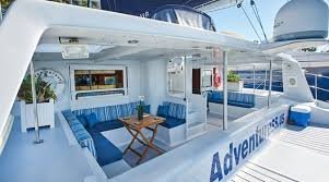 The boat: 60’ catamaran with trampolines on the forward deck, a covered aft cockpit, indoor salon with couches and a bar, and 4 bathrooms onboard.
